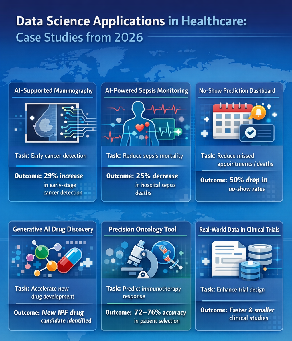 Data science has become an essential tool in the healthcare industry, as technology makes it easier to collect and analyze large amounts of data. Below are verified 2026 implementations that demonstrate measurable outcomes.