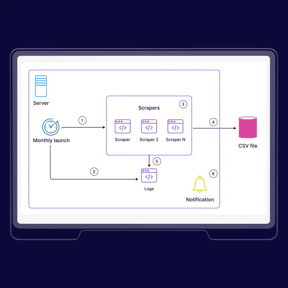 The pipeline includes automated CSV exports and scheduled monthly updates, eliminating manual effort. End-to-end testing, monitoring, and documentation ensure reliable operation, transparent results, and a cost-efficient alternative to traditional data providers.